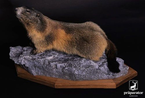 Ganztierform für ein mittelgroßes Murmeltier. Maßen: 4,5 x 9 x 25 x 46 x 41,5 cm