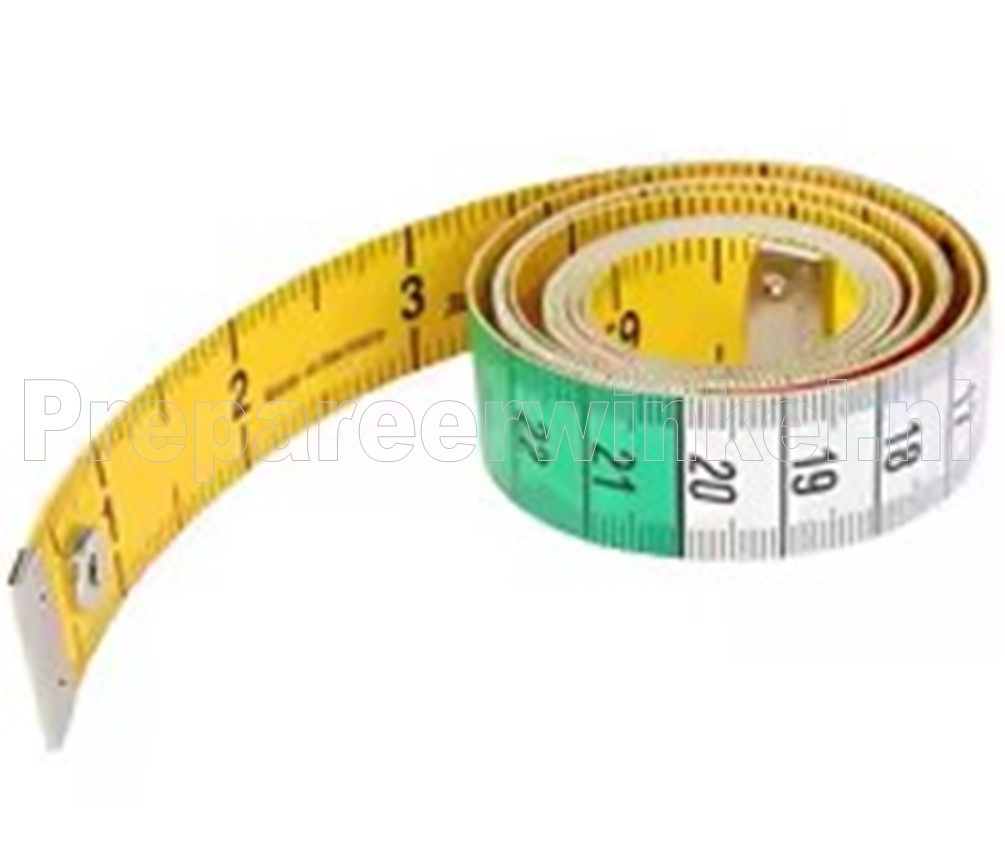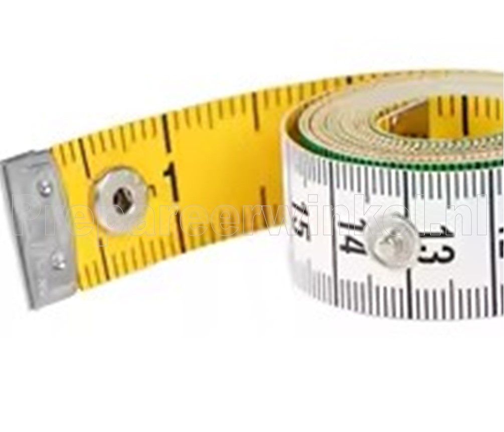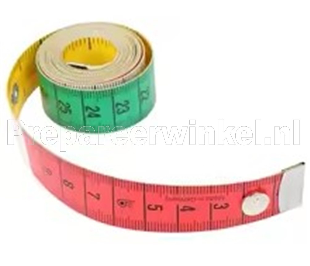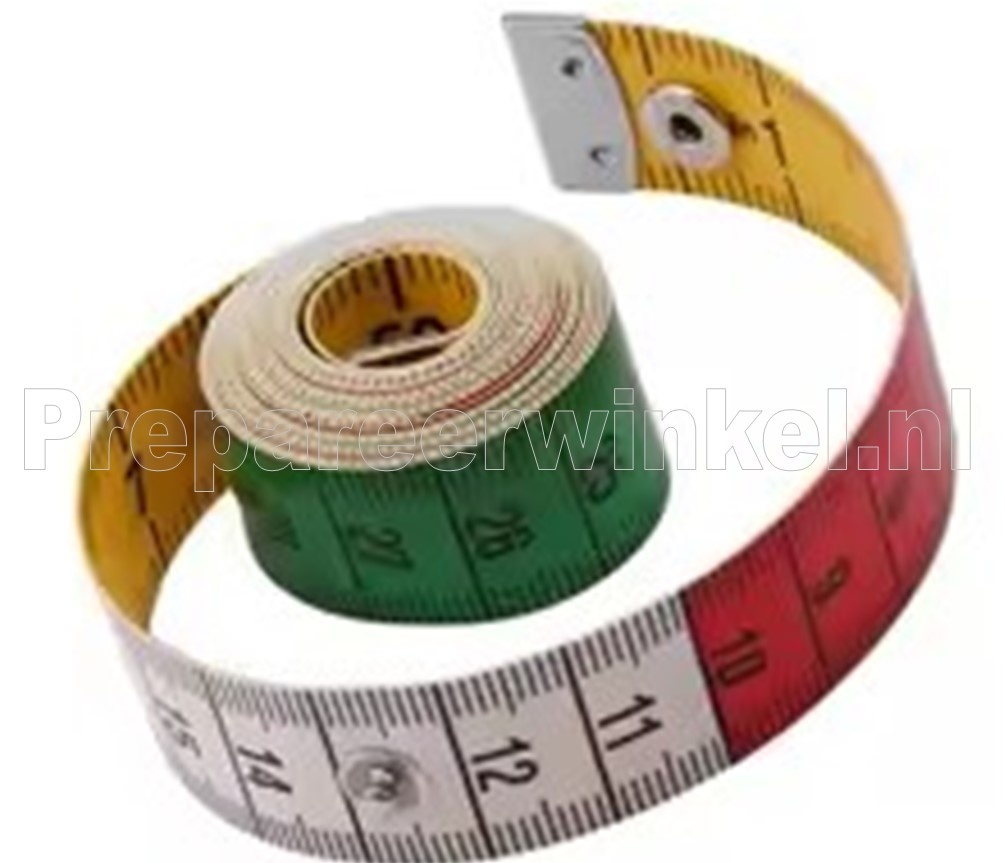 Maßband aus flexiblem Kunststoff. Länge 150 cm / 60 Inch mit Einteilung in Millimeter und Inch, beidseitige Skala. Mehrfarbig (gelb, rot, weiß und grün). Die Enden sind mit einer Metallklammer versehen, das Band ist außerdem mit einem Druckknopf versehen, um das Maßband einfach aufzubewahren. Waschbar, also leicht zu reinigen.