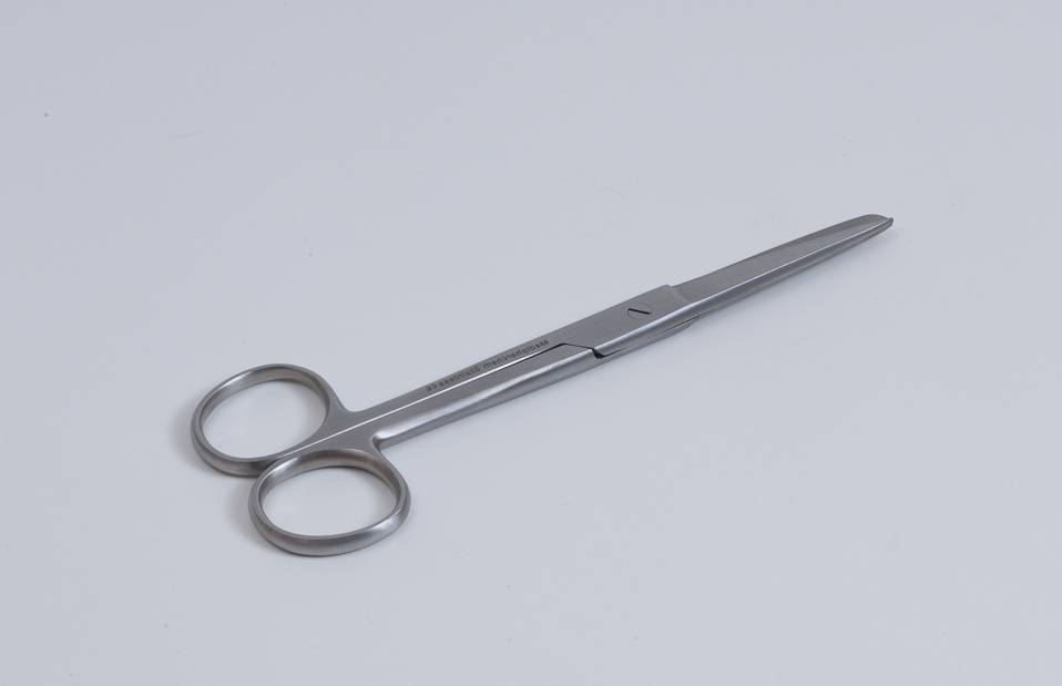 Chirurgische Schere, gerade, aus rostfreiem Stahl. Die Spitzen der Schere sind vom Typ "spitz/stumpf". Verschiedene Größen verfügbar.