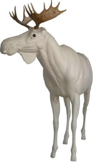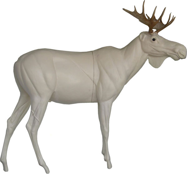 PU-Ganztierform für ein mittelgroßen bis großen europäischen Elchbullen, stehend, nach rechts gewandt. Auch als Halbform (vorne) erhältlich. Die Form wird ohne Augen und Geweih geliefert.