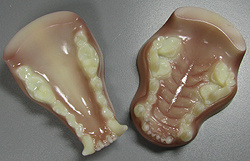 Gebiss für einen Fischotter, ohne Zunge. Die Zähne sind sehr detailliert und in Grundfarben ausgeführt.