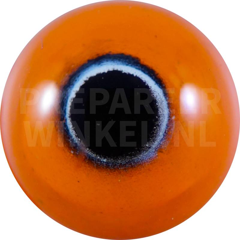 Gelbkopflori, orangefarbene Acrylaugen mit weiß-gelbem Rand und dunklem Halo um eine kleine Pupille, Durchmesser 9 mm