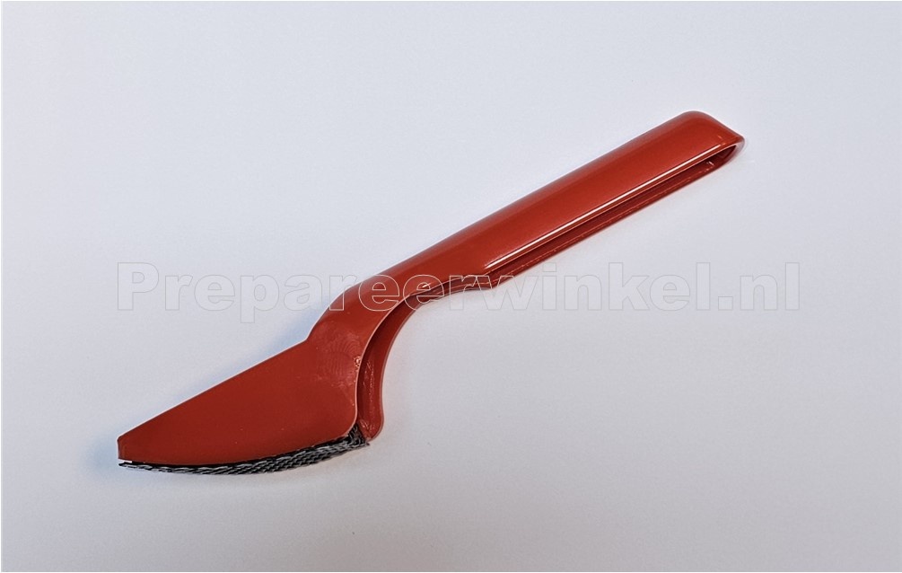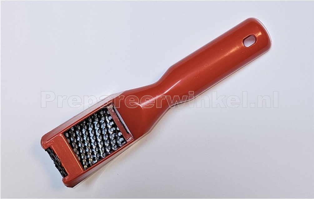 Handraspel, um die Wachsschicht von PU-Formen schnell und präzise zu entfernen oder sie weiter zu formen. Die Raspel ist leicht gekrümmt, so dass sie leicht mit Kurven arbeiten kann. Auf einer Seite befindet sich ein gezackter Abschnitt zum Schneiden von Rillen.