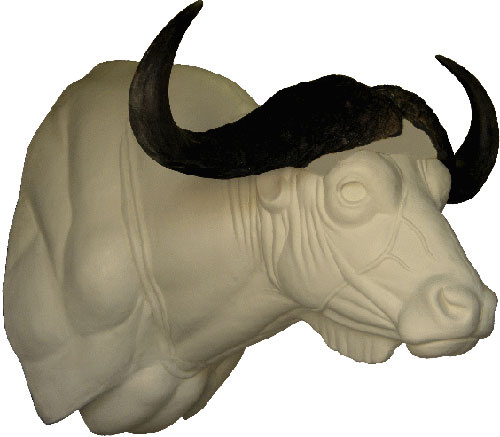PU Wandkopfform für einen mittlerstarker Bulle, Blick geradeaus. Lieferung PU-Form ohne Trophäe.
