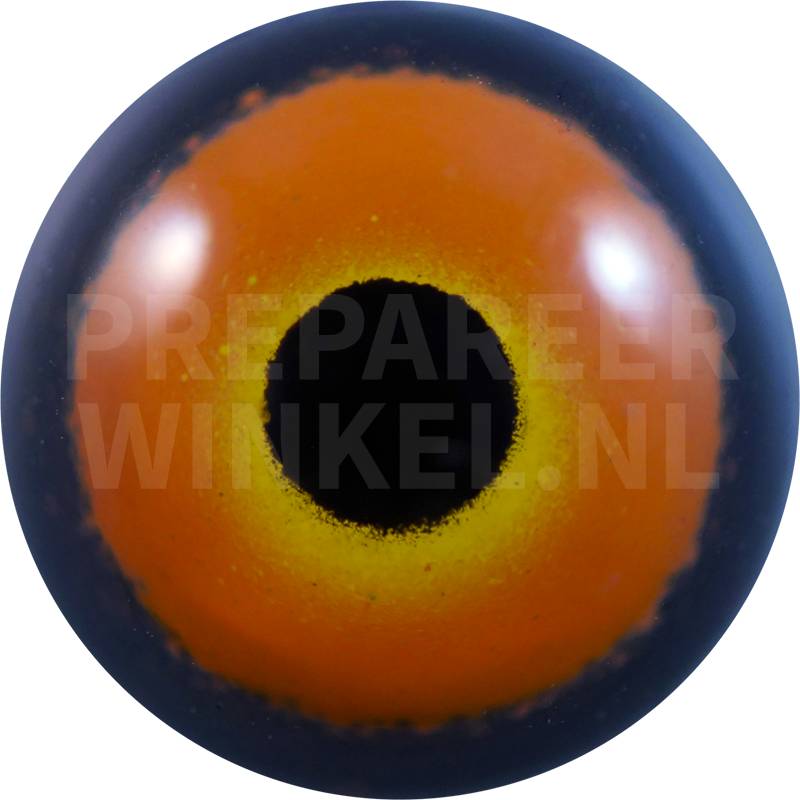 Kapente, orangefarbene Acrylaugen mit einem gelben Halo um die kleine Pupille und einer schwarzen Sklera, Durchmesser 8 mm