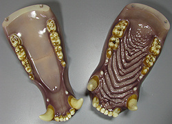 Künstlicher Gebiss für einen Kodiak-Bären, ausgenommen die Zunge. Die Zähne sind sehr detailliert und in natürlichen Farben ausgeführt.