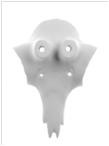 Künstliche Gamsschädel zur Montage von Krücken (Hörner) eines Gämse, Durchmesser Hörner 16 bis 24 mm. Die Kunstschädel sind mit Befestigungselementen für die Krücken und einem Bolzen zur Befestigung des Schädels an einem Wandregal (separat zu bestellen) ausgestattet.