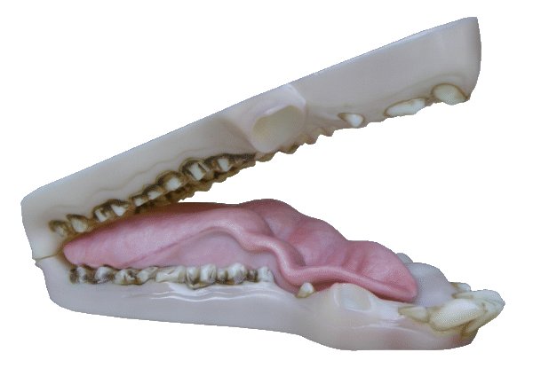 Gebiss für ein mittelgroßes Wildschwein, ohne Hauer. Erhältlich in Grundfarbe und Naturfarbe.