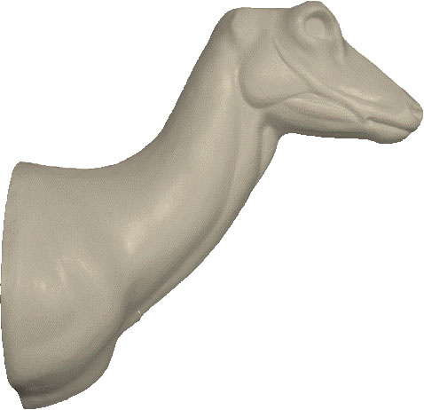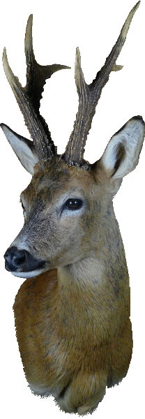 PU-Wandkopfform für ein Präparat eines großen Rehbocks, Blick geradeaus, nach links oder nach rechts gedreht.Abmessungen (A x B x C): 12 x 22 x 32 cm