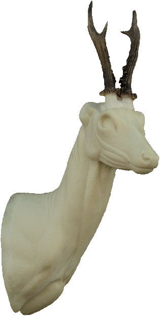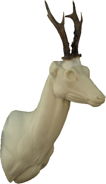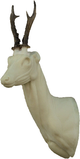 PU-Wandkopfform für ein Präparat eines starken Rehbocks. Blick geradeaus, nach links oder nach rechts. Lieferung ohne Trophäe.