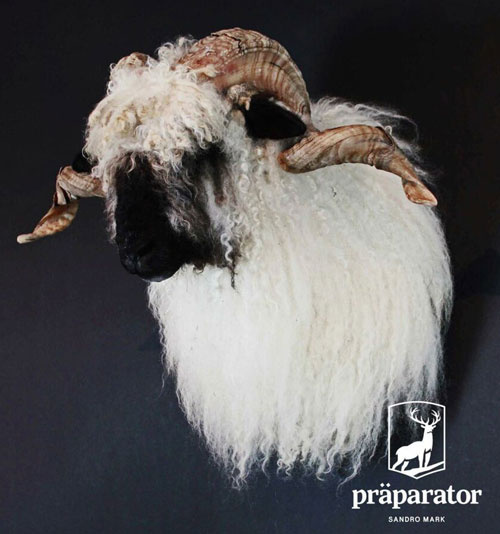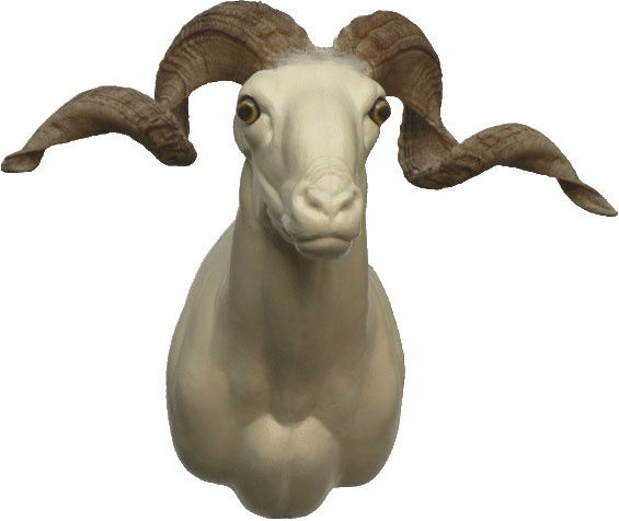 Wandkopfform für einem Hausschaf. Abmessungen (A x B x C): 19 x 34 x 49 cm
