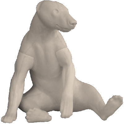 PU-Ganztierform für ein Präparat einer kleinerer Schwarzbär. Sitzend, nach linkts gedreht, mit geschlossener Fang. Auch für jungen Braunbären geeignet. Abmessungen (A x B x C x D x E): 12 x 27 x 43 x 120 x 79 cm