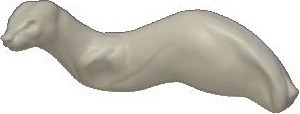 PU-Form für einen starker Steinmarder, Körper ohne Beine, gestreckt stehend oder sitzend, nach links gedreht, geschlossener Fang.
