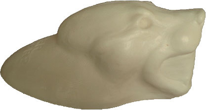 PU-Vorleger Form für ein Präparat eines mittelgroßen Vielfraß, mit offenem Fang. Abmessungen (A x B): 6,6 x 18,5 cm