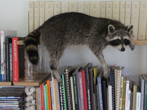 PU-Form für ein Präparat eines mittelgroßen Waschbären, liegend auf Balken, Mauer o.ä., rechtes Vorder- und Hinterbein herunterhängend. Kopf erhoben, nach rechts gedreht, geschlossener Fang. Die Beine sind separat geschäumt und werden mitgeliefert.