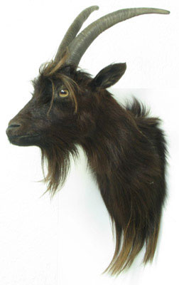 PU Wandkopfform für ein Präparat von einem kleinen bis mittelgroßen (Haus-) Ziege oder Zwergziege, nach rechts gedreht. Abmessungen (A x B x C): 15 x 24 x 30 cm