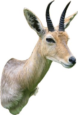 PU form for a shouldermount or gamehead taxidermy of a medium-sized Mountain reedbuck. Looking right. Dimensions (A x B x C): 14 x 23 x 30 cm