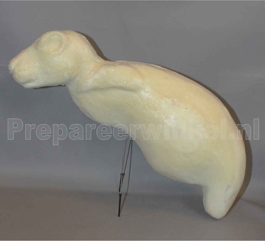 PU form for a life size preparation of a European or wild rabbit. Body with head, posture sitting attentively, looking slightly to the left. Without legs, thus ideal for mounts in which own leg bones are used. Sizes (A x B x C x D x E): 5 x 9 x 16 x 45 x 32 cm