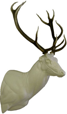 Offset PU form for a shouldermount mount of a large red deer, looking slightly to the right. For a strong deer of approx. 150 kg gutted weight, but outside the rutting season (thinner neck circumference than form RH10). Dimensions (A x B x C): 26,5 x 47 x 69 cm