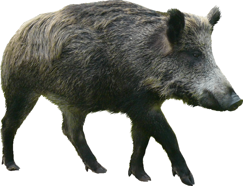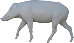 PU form for a life-size mount of a wild boar. Posture: walking straight ahead. For a boar of approx. 40 kg gutted weight. Closed mouth. Measurements (A x B x C x D x E): 22,5 x 33 x 59 x 122 x 86 cm