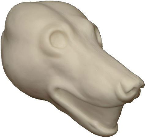PU exchange head with slightly opened jaw for a medium to large size Wolf. This head can be mounted on the life size forms SO-G-WO5-R-G and SO-G-WO4-L-G. Dimensions (A x B): 13.5 x 28 cm.