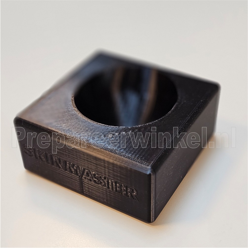 De kegel is ook met een voetblok als set te verkrijgen. Dit blok is voorzien van een 1 asymmetrisch gat waarin de kegel zowel met de dikke kant als de dunne kant te steken is door het blok simpelweg om te draaien. Hiermee kunt u de kegel stabiel op uw werktafel zetten terwijl u de huid dun snijdt.