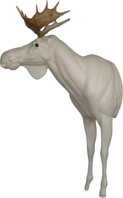 PU vorm voor een life size preparaat van een middelgrote tot grote Europese Eland stier, staand, naar rechts kijkend. Ook verkrijgbaar als halve vorm (voorzijde). De vorm wordt geleverd zonder ogen en gewei. Maten (A x B x C x D x E): 44 x 69 x 94 x 266 x 184 cm