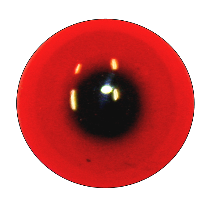 Gekuifde vuurrugfazant, rode acryl ogen met een zwarte ronde pupil. Diameter 10 mm