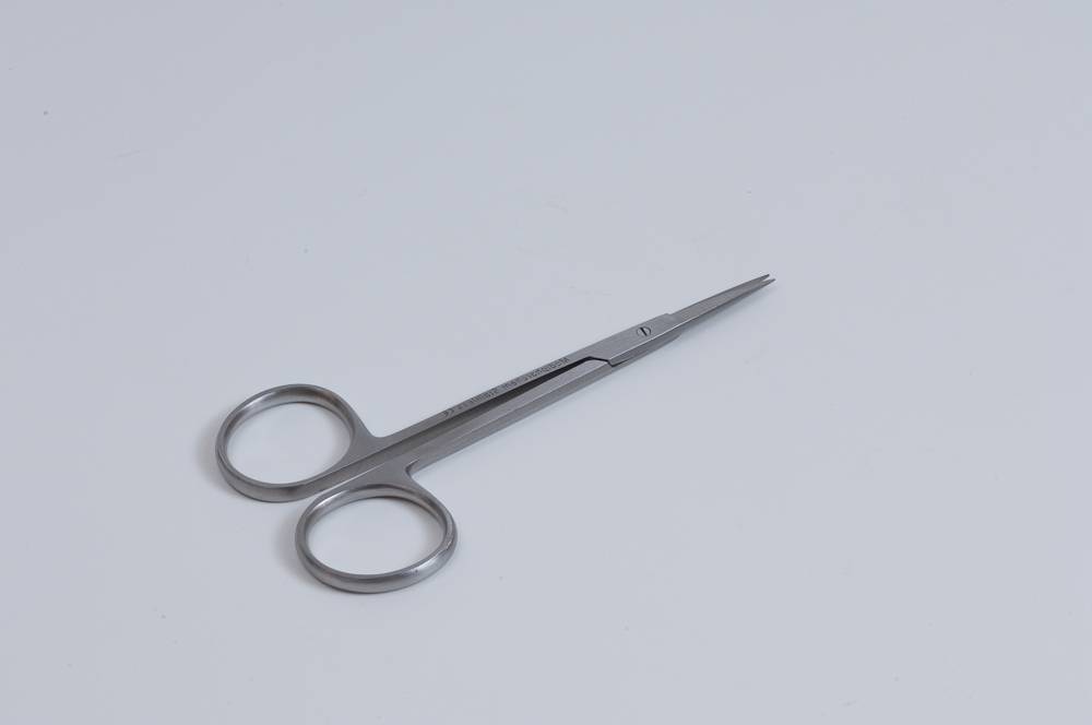 Irisschaar, recht, gemaakt van rvs. De punten van de schaar hebben het model 'spits/spits'. Verkrijgbaar in de lengtes van 9 en 11 cm.