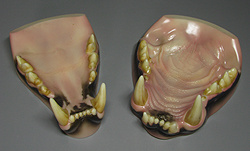 Kunstgebit voor een grote leeuw, natuurlijk gekleurd. Maten (A x B): 13,8 x 6 cm