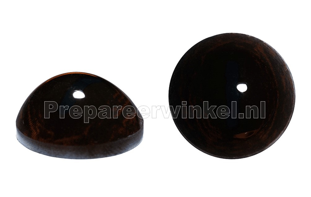 Prime: ogen met een witte sclera met aderen, diameter 22/26 mm. De vorm van het hoornvlies is asymmetrisch, precies zoals het natuurlijke oog (de ogen op de foto's zijn medium bruin, donkerbruin wordt geleverd!).